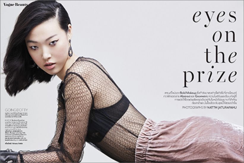 Model featured in “GOING DOTTY” issue of Vogue Thailand Magazine wearing Hari Jewels Diamond and Sapphire Earrings in November 2015 issue.
